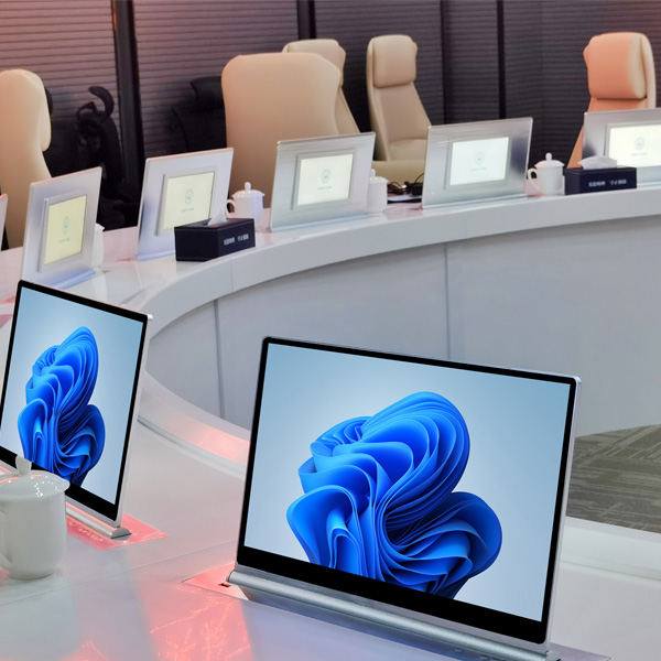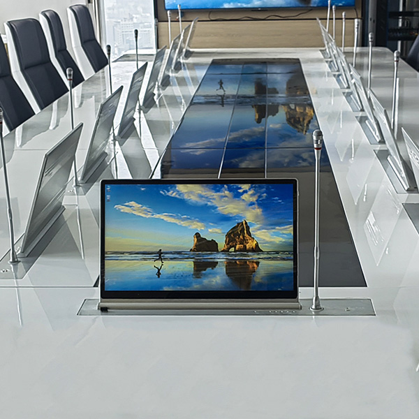 Mesa elevadora de monitor motorizada retráctil para sistemas de reuniones sin papel